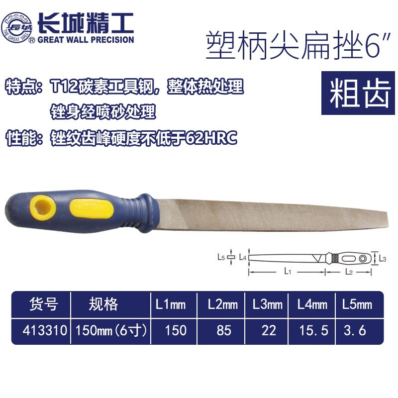 长城精工平锉 钢锉 扁锉刀粗齿金属木工打磨工具平板挫刀150mm6寸 413310