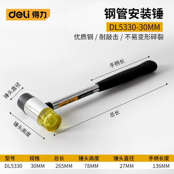 得力(deli)钢管柄地板安装锤 可更换锤头 钢管安装锤30mm DL5330