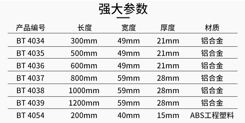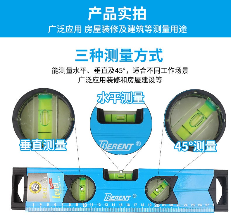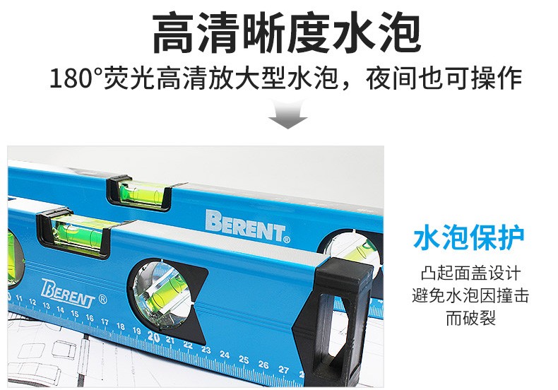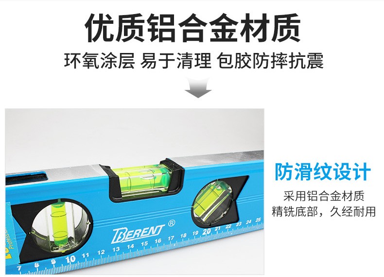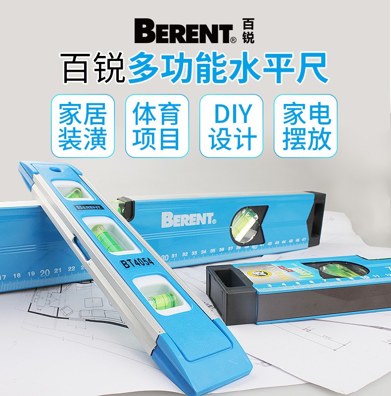 百锐 BERENT高精度磁性水平尺铝合金平水尺 迷你家用装修平衡尺 靠尺 测量工具 BT4034 300mm
