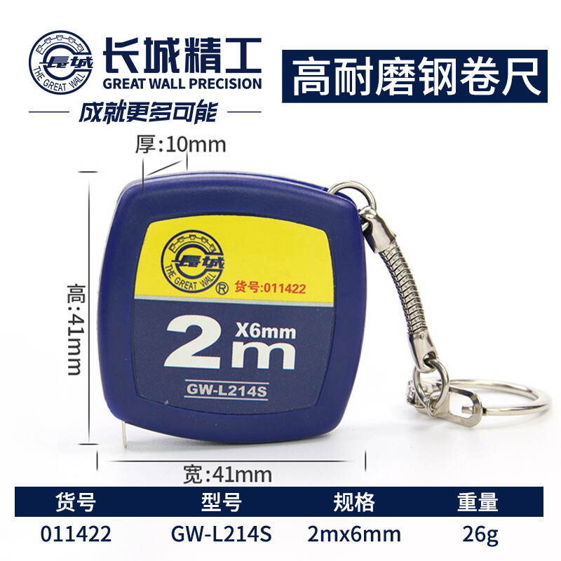 长城精工卷尺小2米随身可爱钢卷尺耐磨防水迷你便携圈尺尺子米尺 011422
