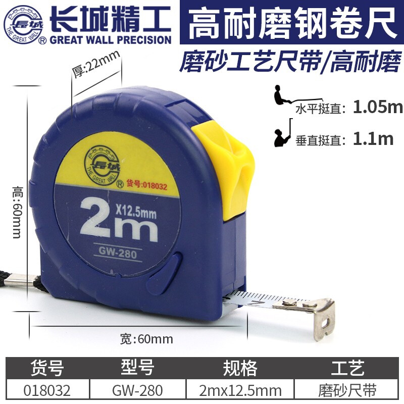 长城精工钢卷尺 2米12.5mm加厚防水耐磨圈尺 高精度米尺 018032