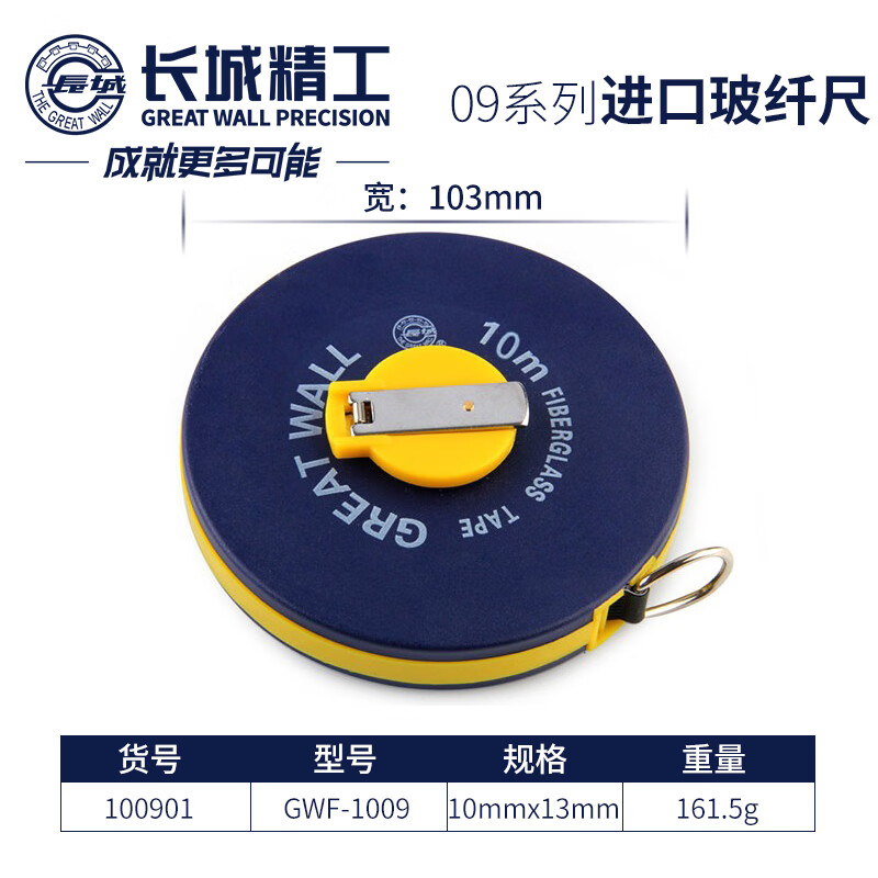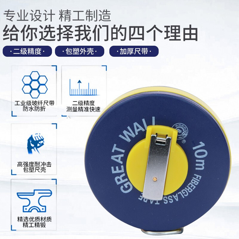 长城精工皮尺 皮卷尺防水建筑工程尺子纤维软卷尺10米 100901