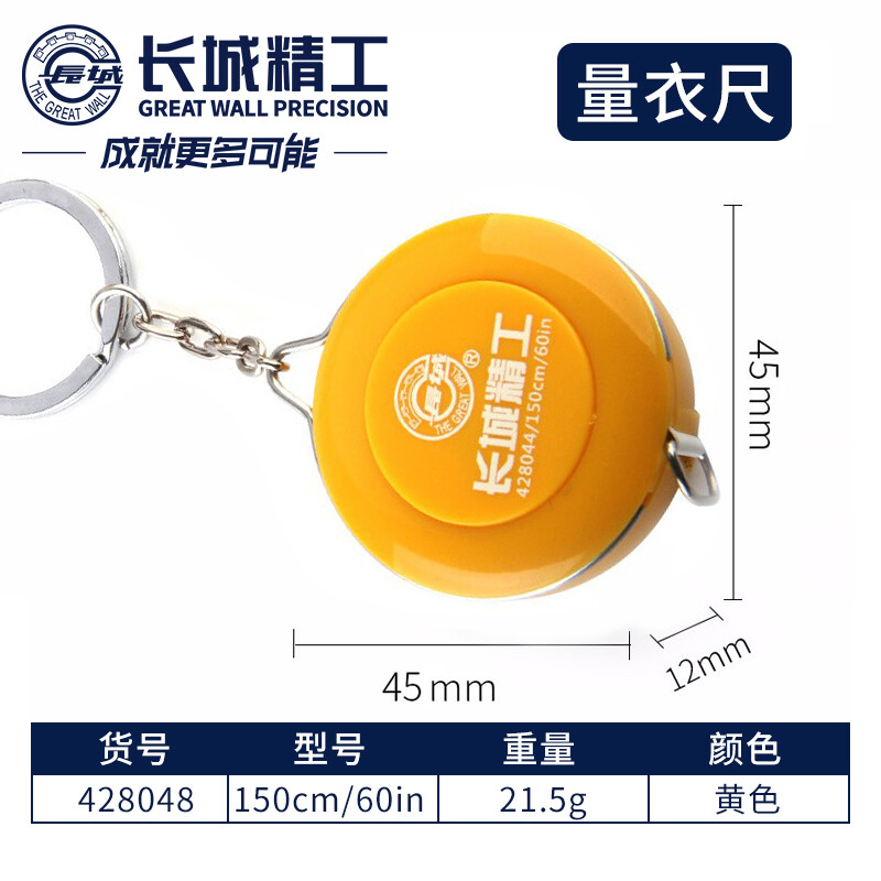 长城精工卷尺小随身可爱迷你皮尺软尺子 黄色 1.5米 428048