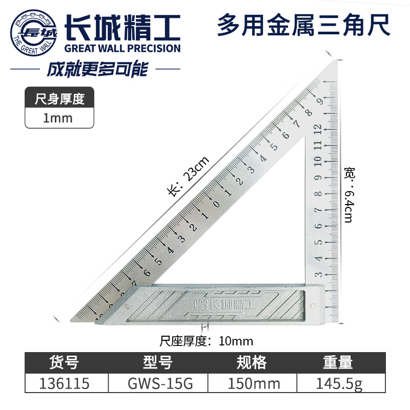 长城精工 三角尺 不锈钢木工角尺高精度工业级90度加厚 150mm 136115
