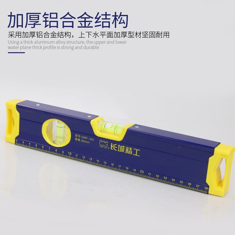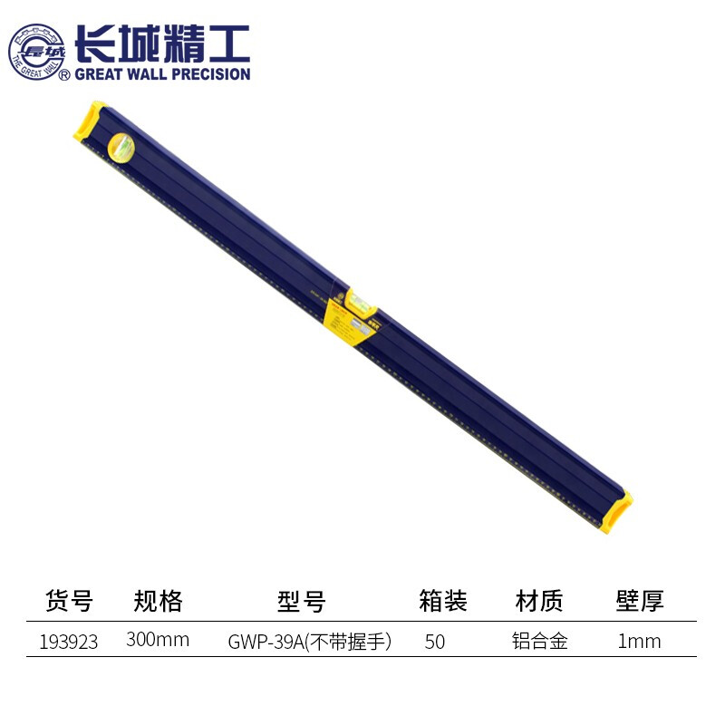 长城精工 水平尺 高精度 铝合金靠尺工业级 2水泡不带握手 300mm 193923