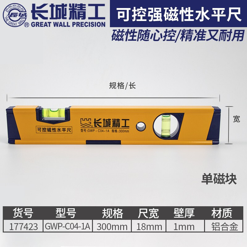 长城精工 水平尺 铝合金高精度磁性C04-1可控强磁性平水尺 300mm 177423