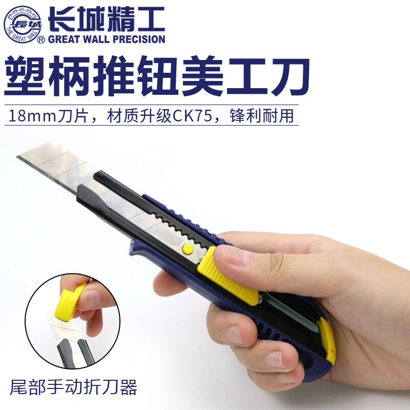 长城精工美工刀 18mm推钮家用裁纸刀 办公用品 CK75刀片 416503