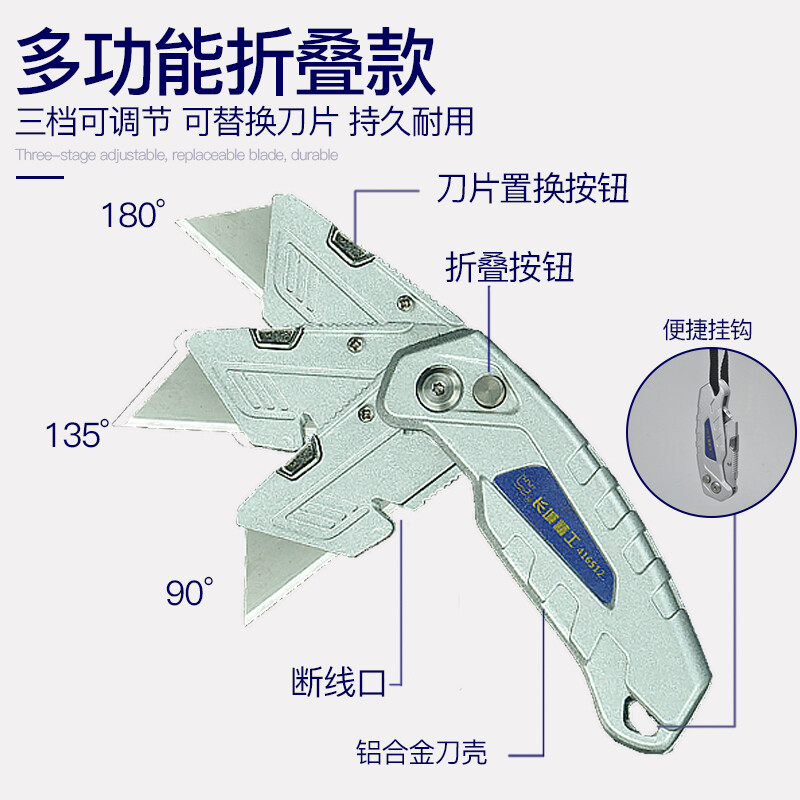 长城精工 美工刀 铝合金折叠实用刀T型壁纸刀 三段定位功能CK75刀片 416512
