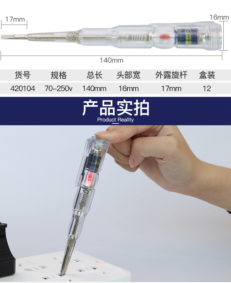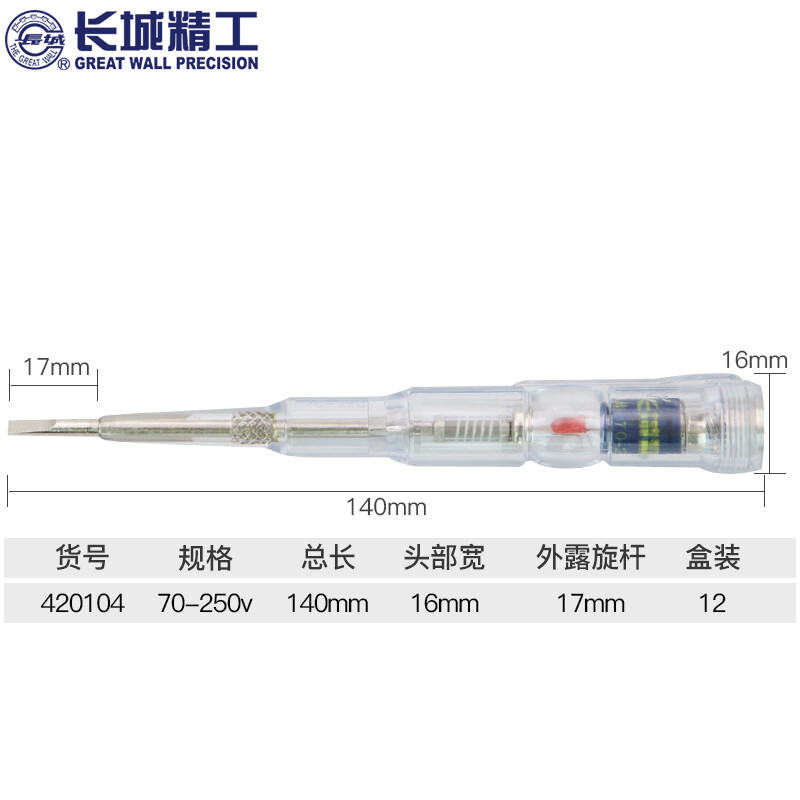 长城 电笔多功能感应测电笔螺丝刀两用家用测电检测电工试电笔 70-250v(420104)