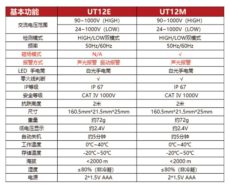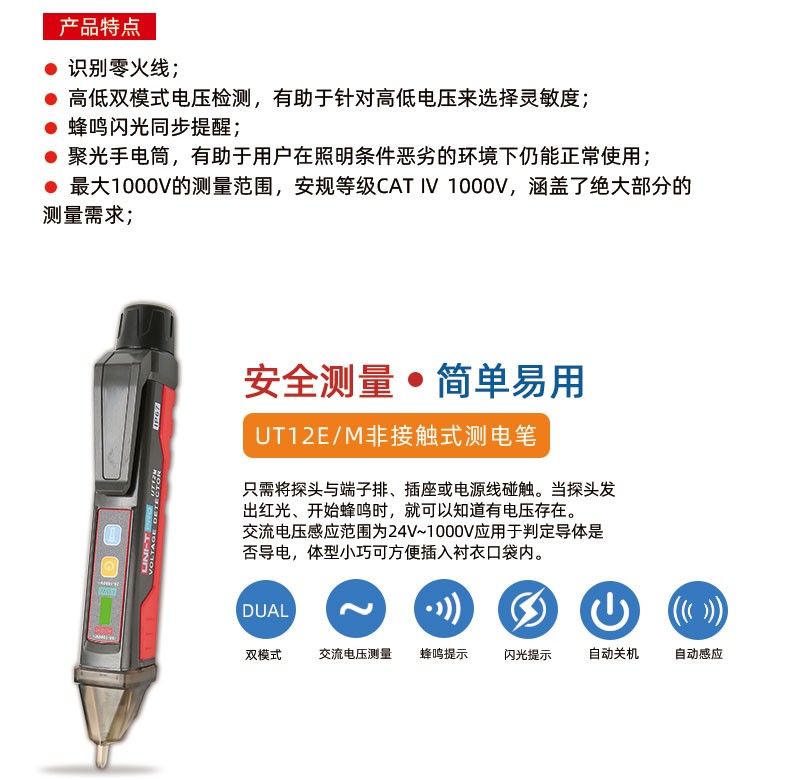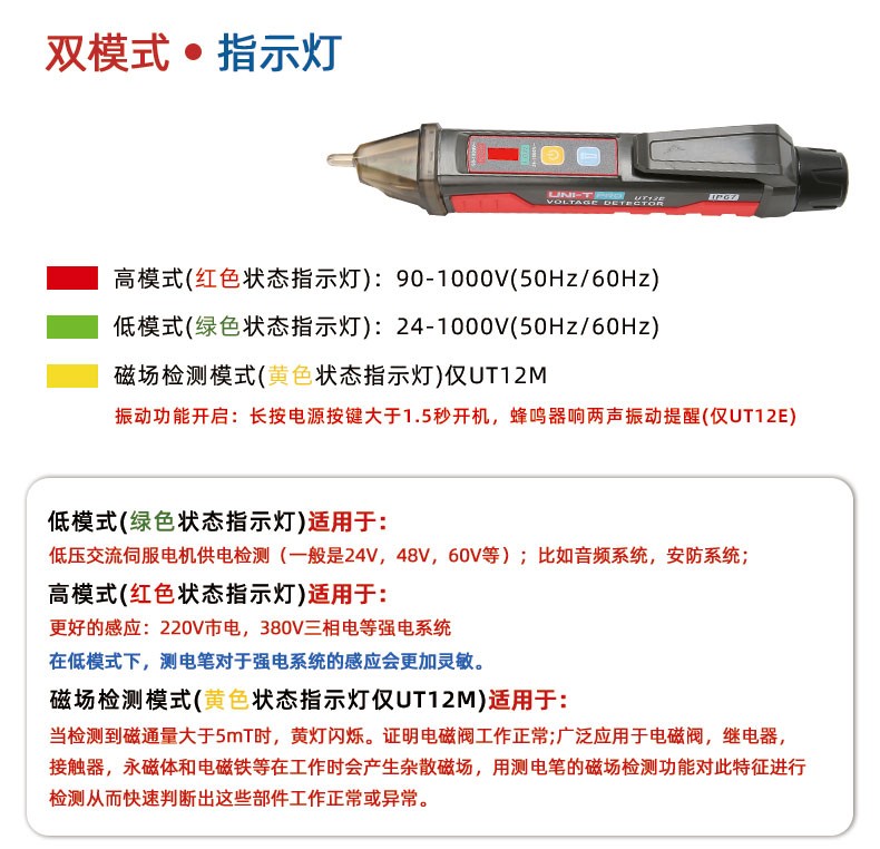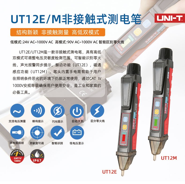 优利德UT12E/M非接触智能感应测电笔零火线识别线路检测试电笔 UT12E(振动模式)
