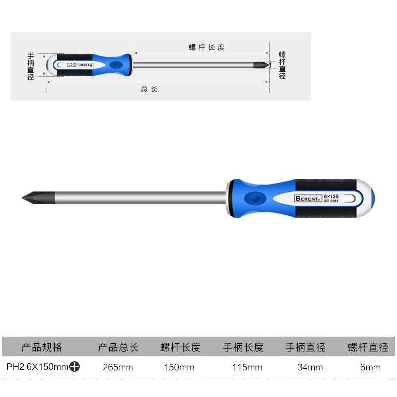 BERENT/百锐三色柄螺丝批BT5003 十字6*150MM