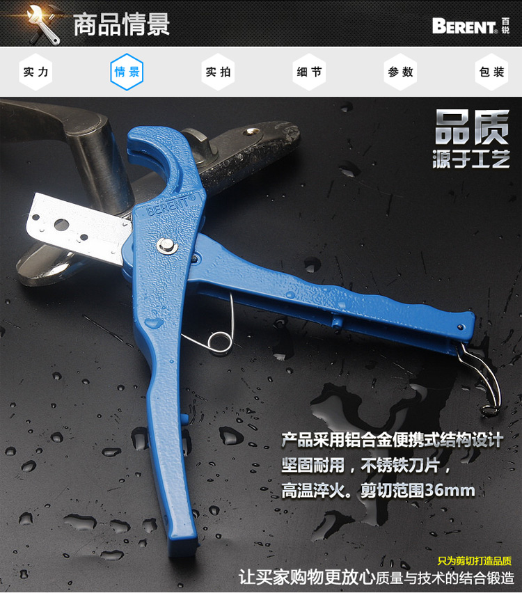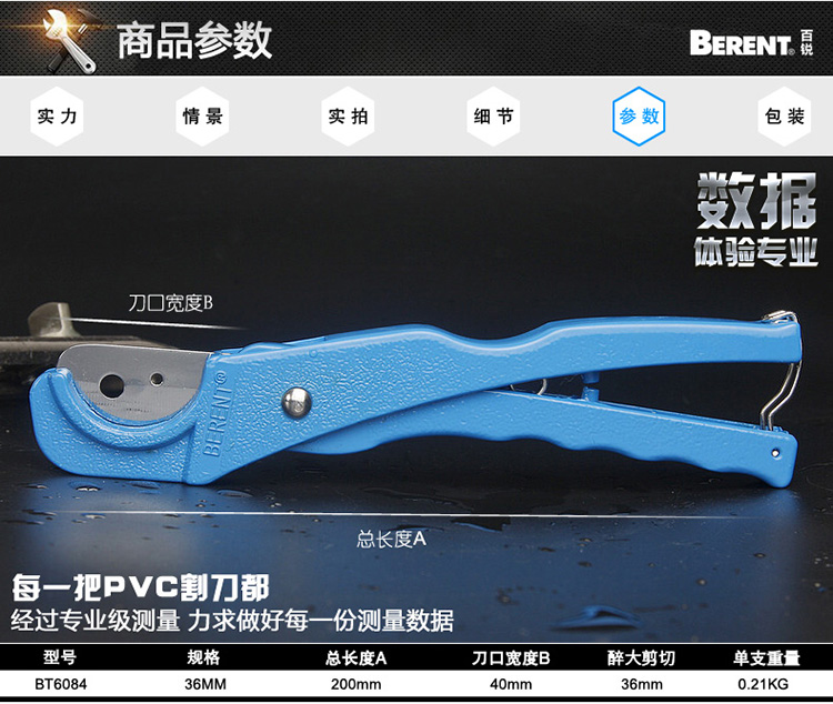 百锐(BERENT)PVC管子割刀器 PPR剪刀塑管快速剪刀割管器切管器 水管维修工具 BT6084