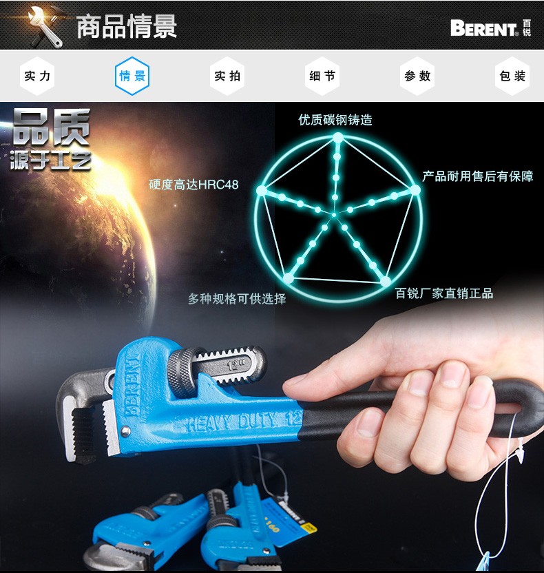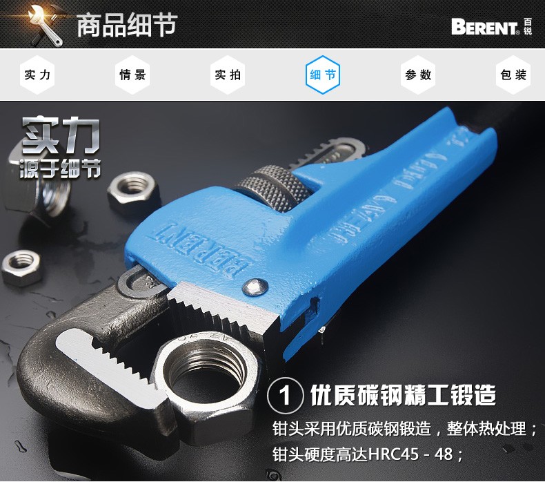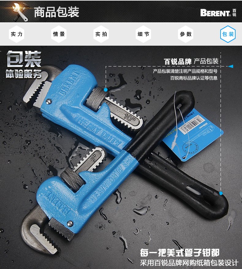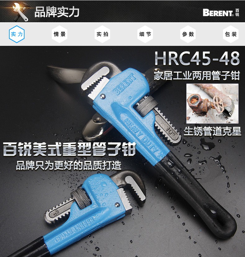 百锐 BERENT水管钳水泵钳圆管钳水管钳夹持快速夹管钳管子钳扳手扳子家用维修工具 BT1160 10