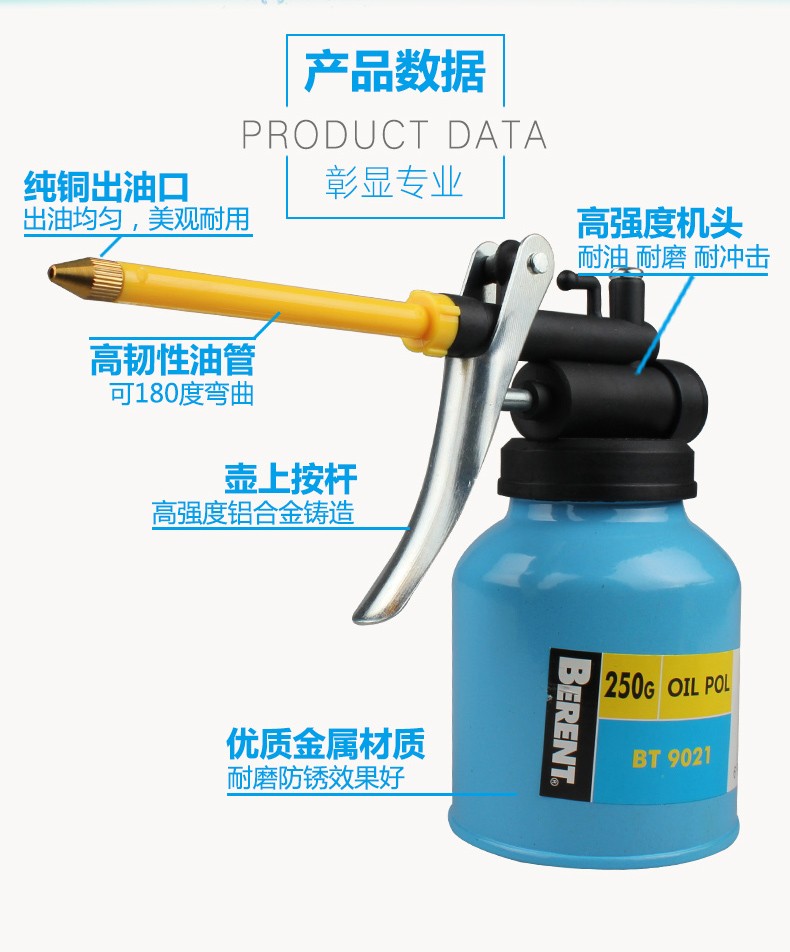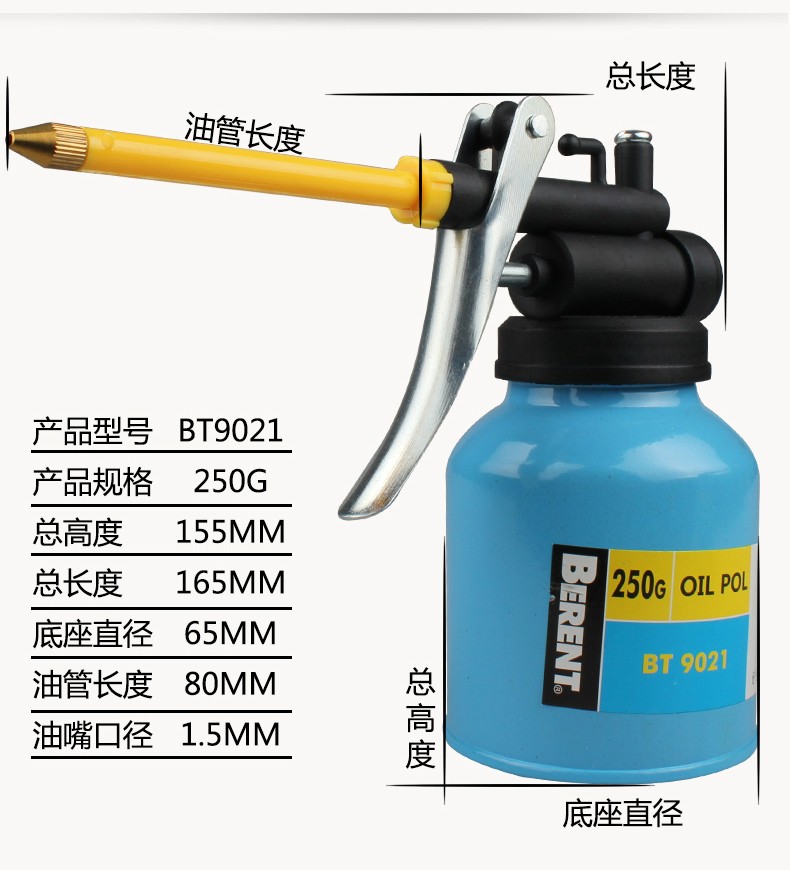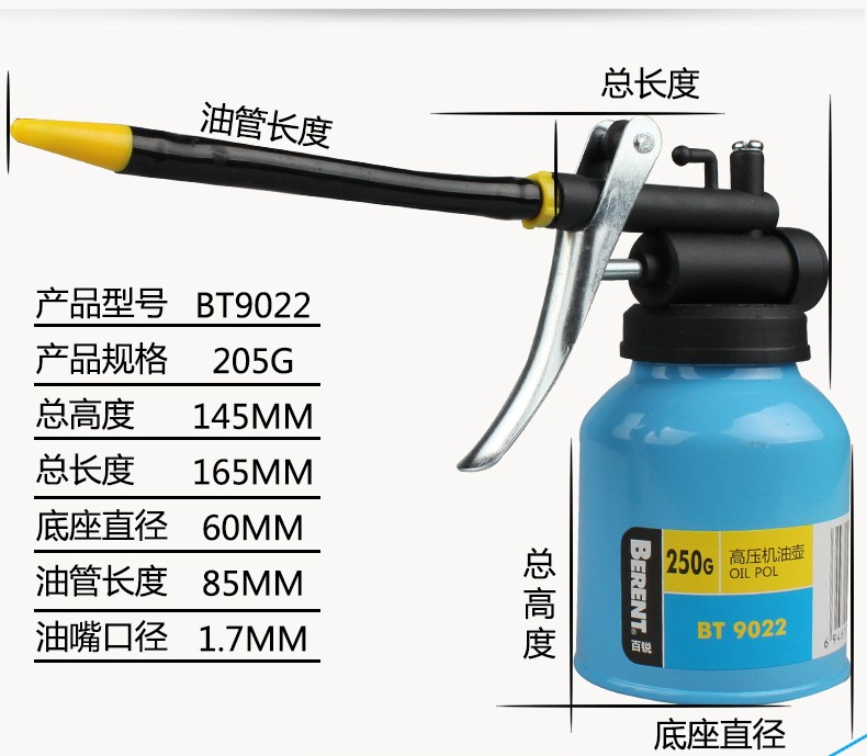 百锐 BERENT 长嘴机油壶 润滑油壶 手动加油壶 高压机油壶 机油枪 BT9021 250g铜嘴塑料管壶