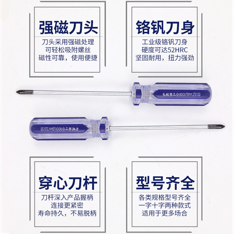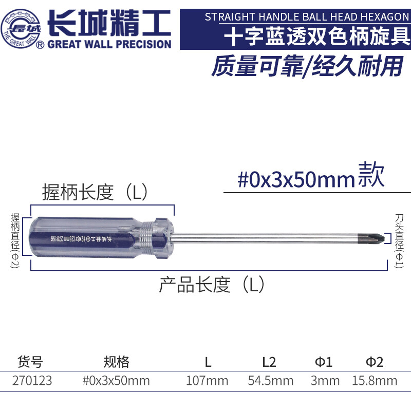 长城精工 螺丝刀 十字 小号家用螺丝批改锥 改刀 3*50mm 2寸 270123