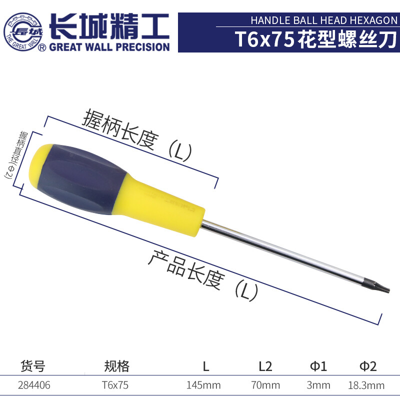 长城精工 花形螺丝刀 花型螺丝批 梅花形六角星型起子改锥 T6*75mm 284406