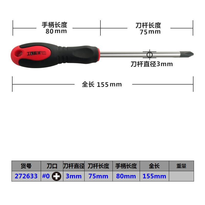 长城精工 十字螺丝刀 工业级旋具螺丝批 改锥 改刀 3-75mm 3英寸 272633