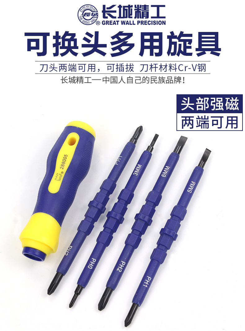 长城 十字螺丝刀家用套装两用双头锣丝刀一字起子改锥改刀工具 288005