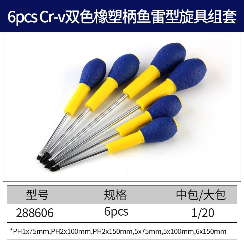 长城精工 十字一字螺丝刀套装 鱼雷型螺丝刀组套 带磁性家用改刀 6件套 288606