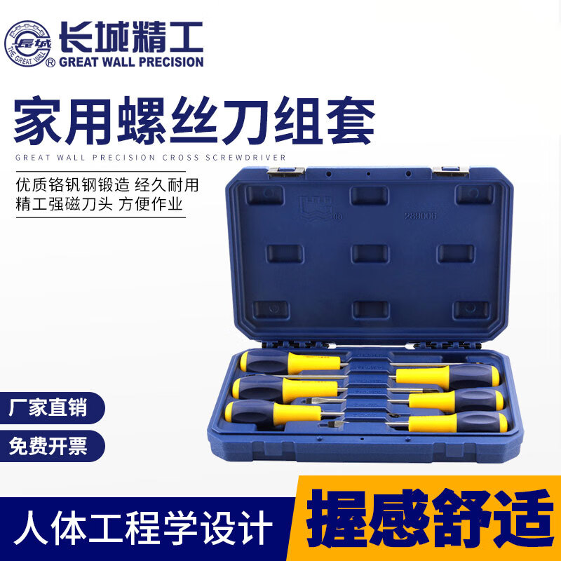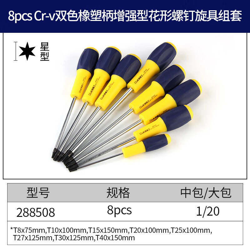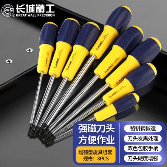 GREATWALL/长城精工双色橡塑柄增强型花形螺钉旋具组套 288508 8件Cr-V