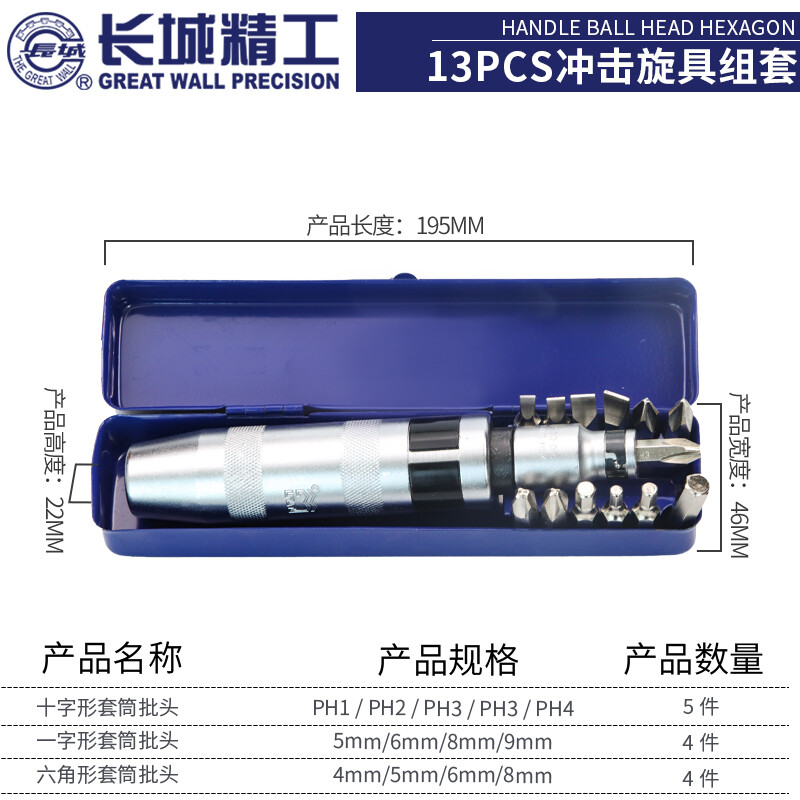 长城精工冲击螺丝刀 多功能撞批起子工业级敲击改锥螺丝批 6件套 286606