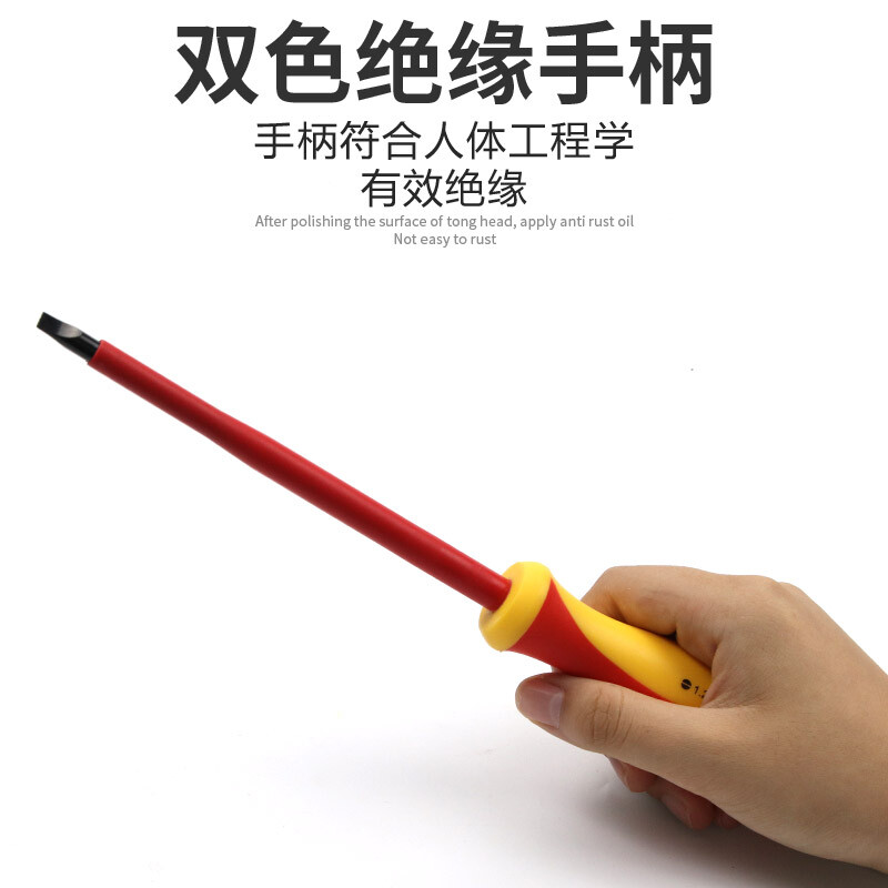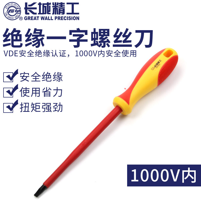 长城精工 一字绝缘螺丝刀 VDE平口螺丝批电工工具耐高压起子改锥 0.4*2.5*75mm 291037