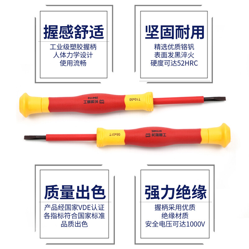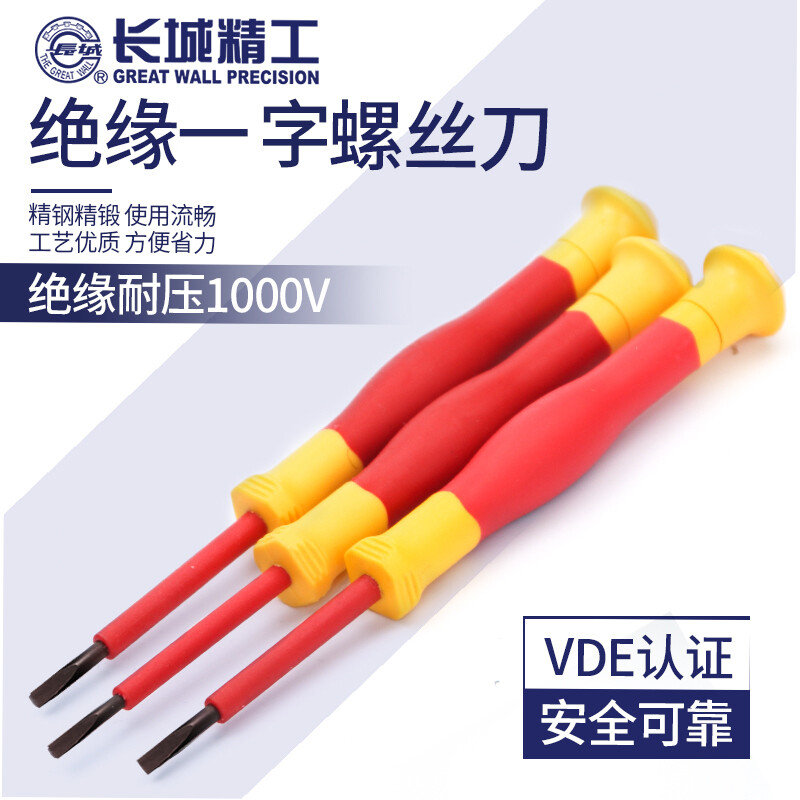 长城精工 一字螺丝刀 绝缘精密螺丝批VDE平口起子 电工工具 3.0*0.5*50mm 291105