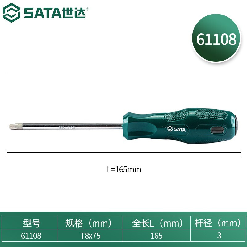 世达(SATA)A系列花形螺丝批T10x100MM 起子改锥螺丝刀工具61101-61108 A系列花形螺丝批T8x75MM 61108
