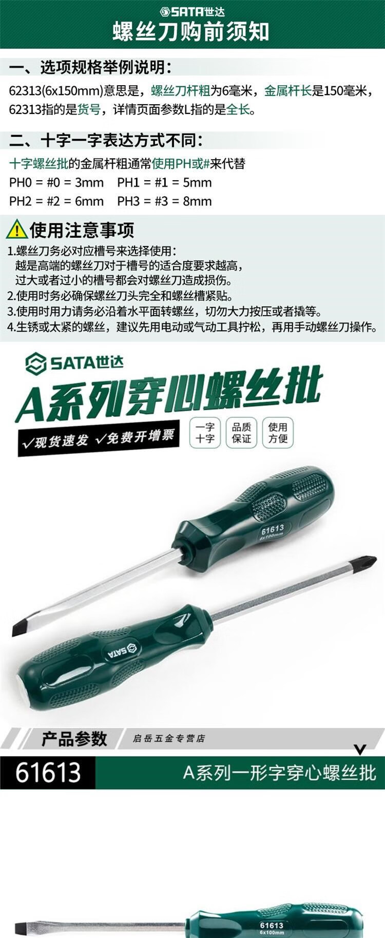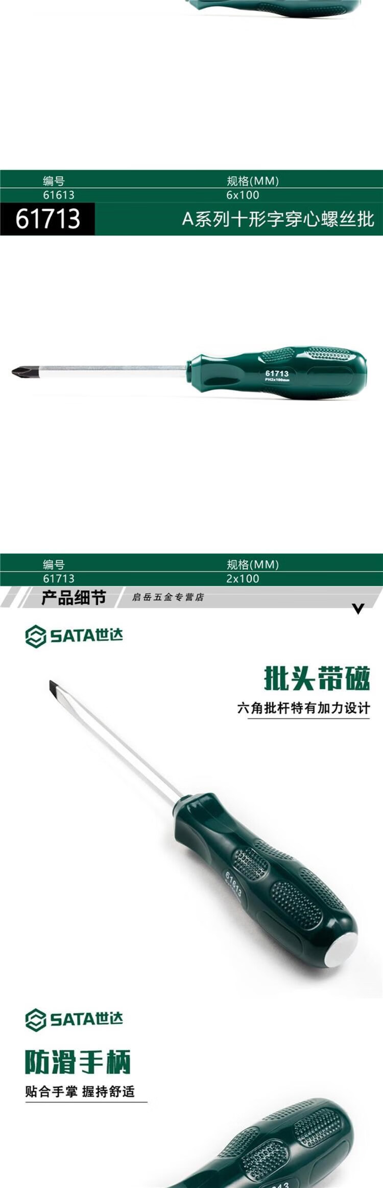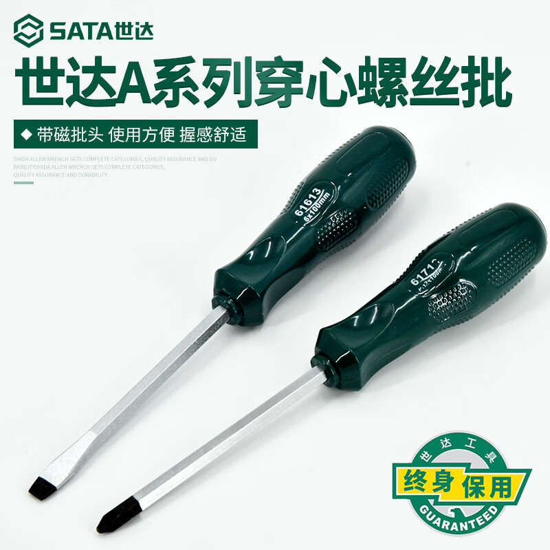 世达工具穿心螺丝刀十字一字可敲击螺丝刀冲击螺丝刀61613/61713 61713 (#2x100mm)十字
