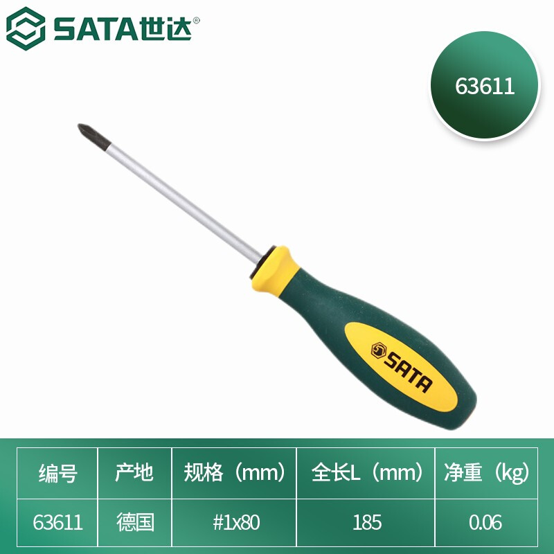 世达(SATA)G系列螺丝刀三色柄十字形螺丝批 梅花起子 63611 #1x80MM