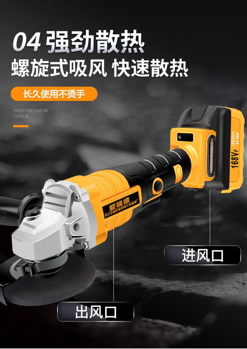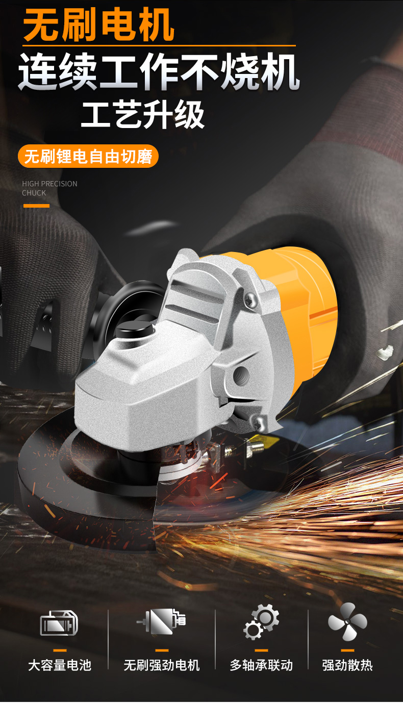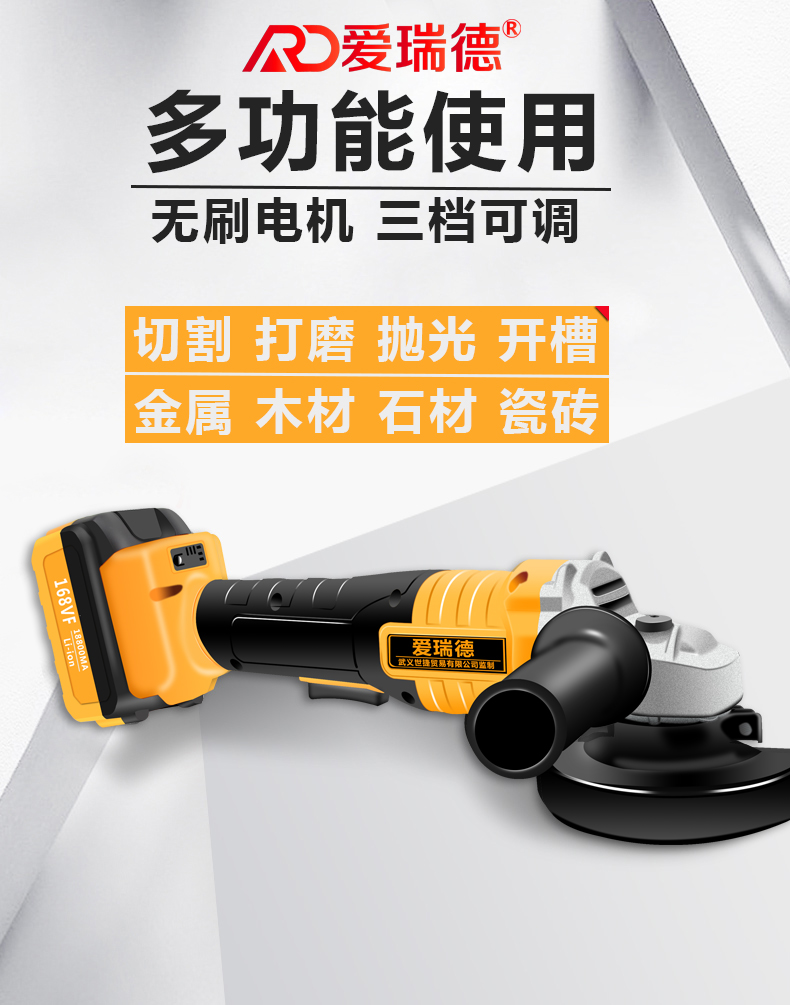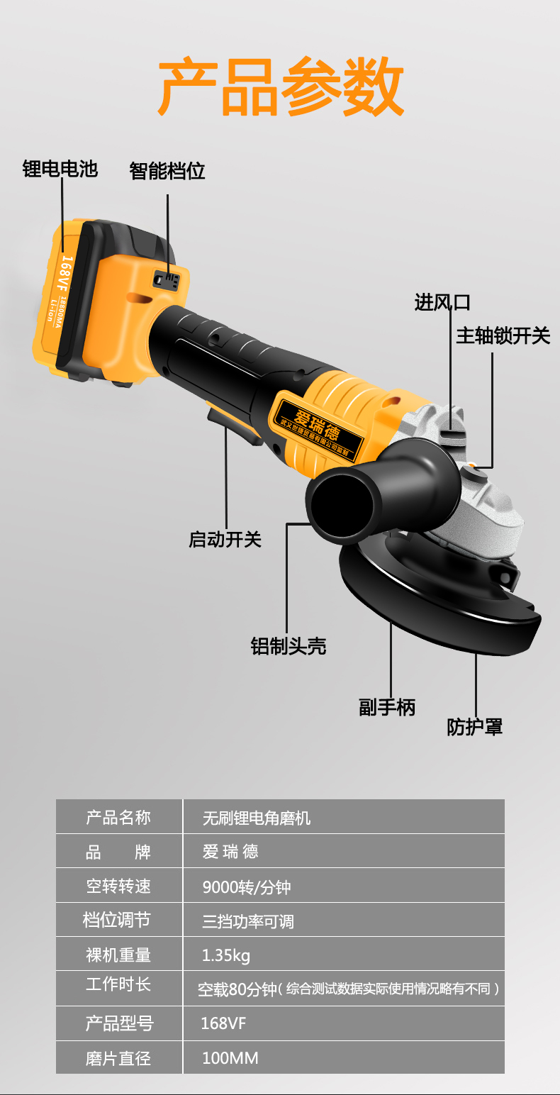 德国爱瑞德锂电角磨机无刷角向磨光机充电式切割机家用多功能抛光打磨机工具 星耀款无刷角磨机(二电一充)
