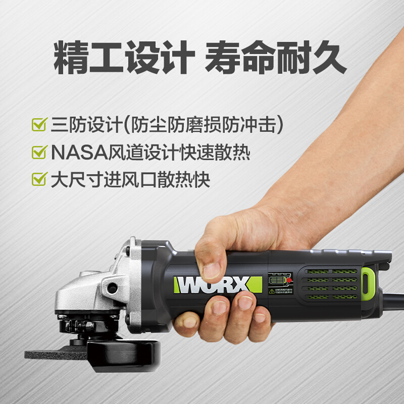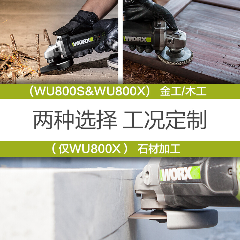 威克士(WORX)工业级角磨机WU800X 切割机打磨机抛光机开槽机磨光机手磨机砂轮机五金电动工具