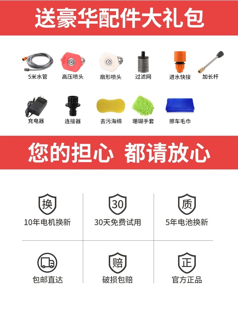 锂电池无线洗车机便携式洗车水泵大功率高压水枪家用洗车器打药机