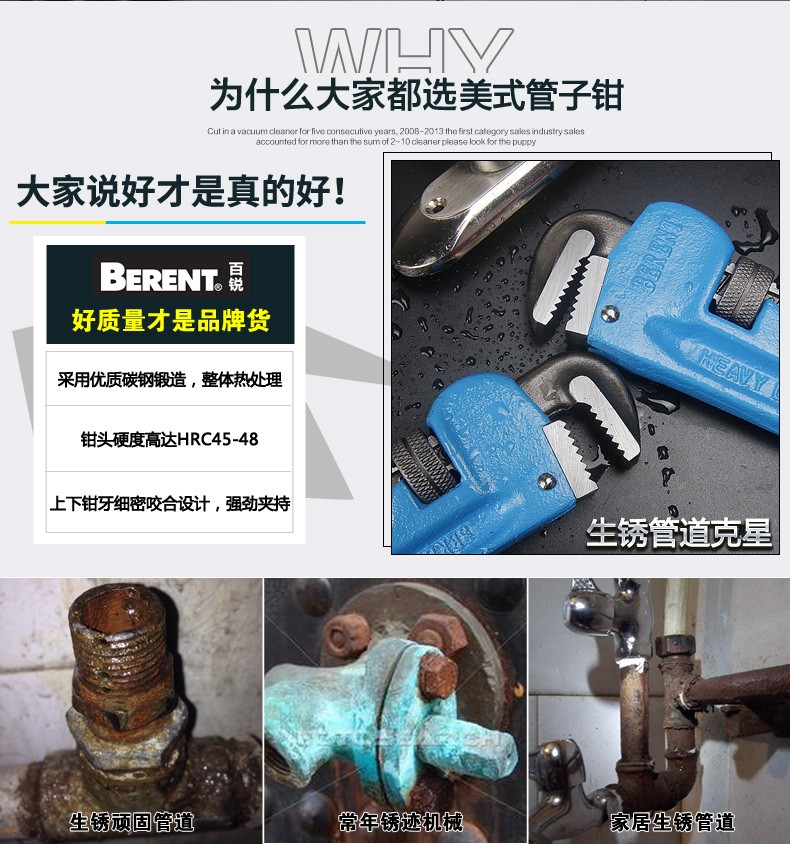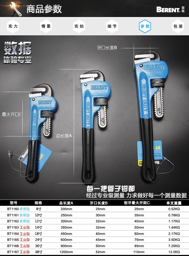 百锐 BERENT水管钳 家用维修工具 BT1160 8