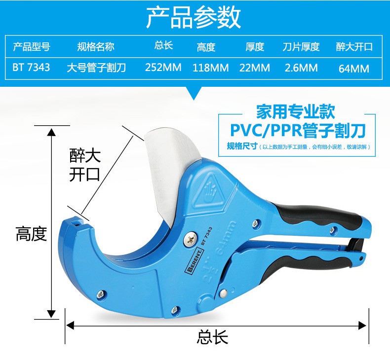 百锐 BERENT PVC/PPR管子割刀 切管器 水管刀 剪管器 水管铝塑管剪刀 BT7343