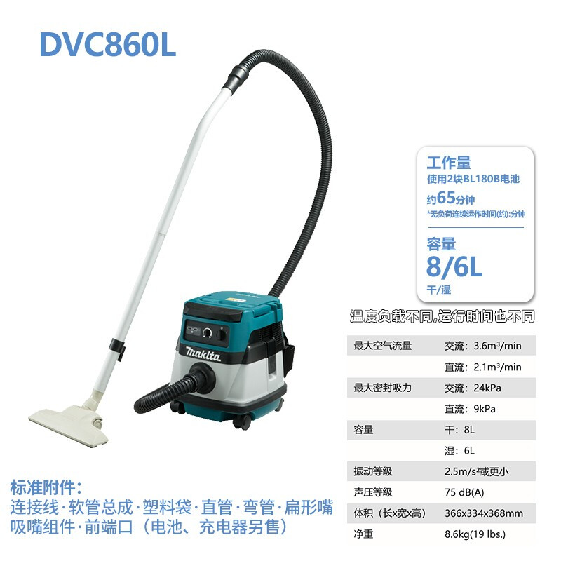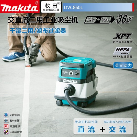 牧田/MAKITA DVC860LZ交直流二用吸尘机 粉尘吸尘器干/湿两用8/6L裸机