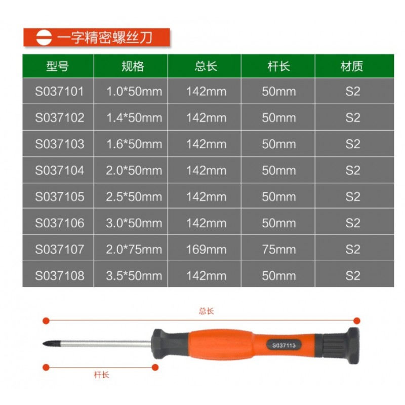 钢盾 S037103 一字精密螺丝刀1.6x50mm