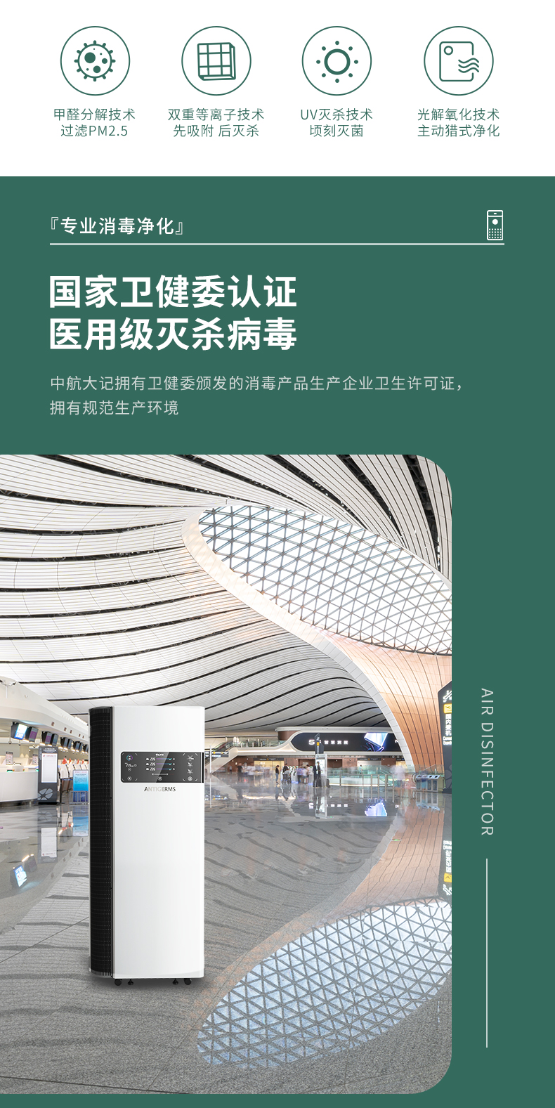 中航大记医疗级大功率急速除甲醛PM2.5灭杀消毒细菌柜式静音空气净化消毒机 ZHZLP20Y