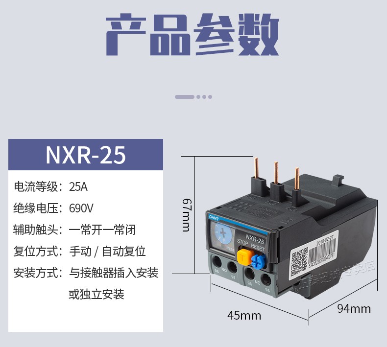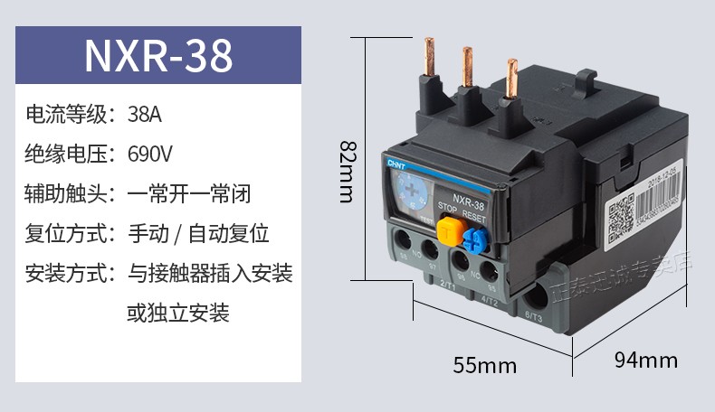 正泰(CHNT) 正泰热过载继电器昆仑NXR系列热继电器保护过载保护热过载保护器 NXR-100 48A-65A