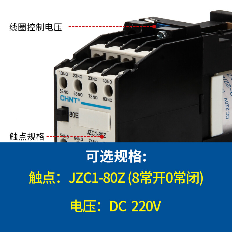 接触式继电器JZC1-80Z 八常开DC24v 110v 220v直流接触器10a JZC1-80Z 220V 直流