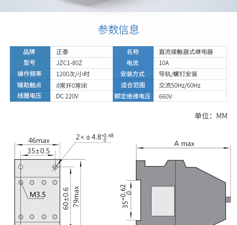 接触式继电器JZC1-80Z 八常开DC24v 110v 220v直流接触器10a JZC1-80Z 110V 直流