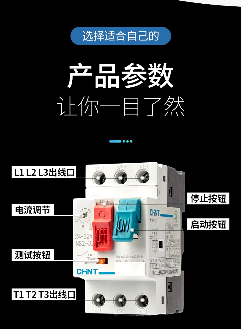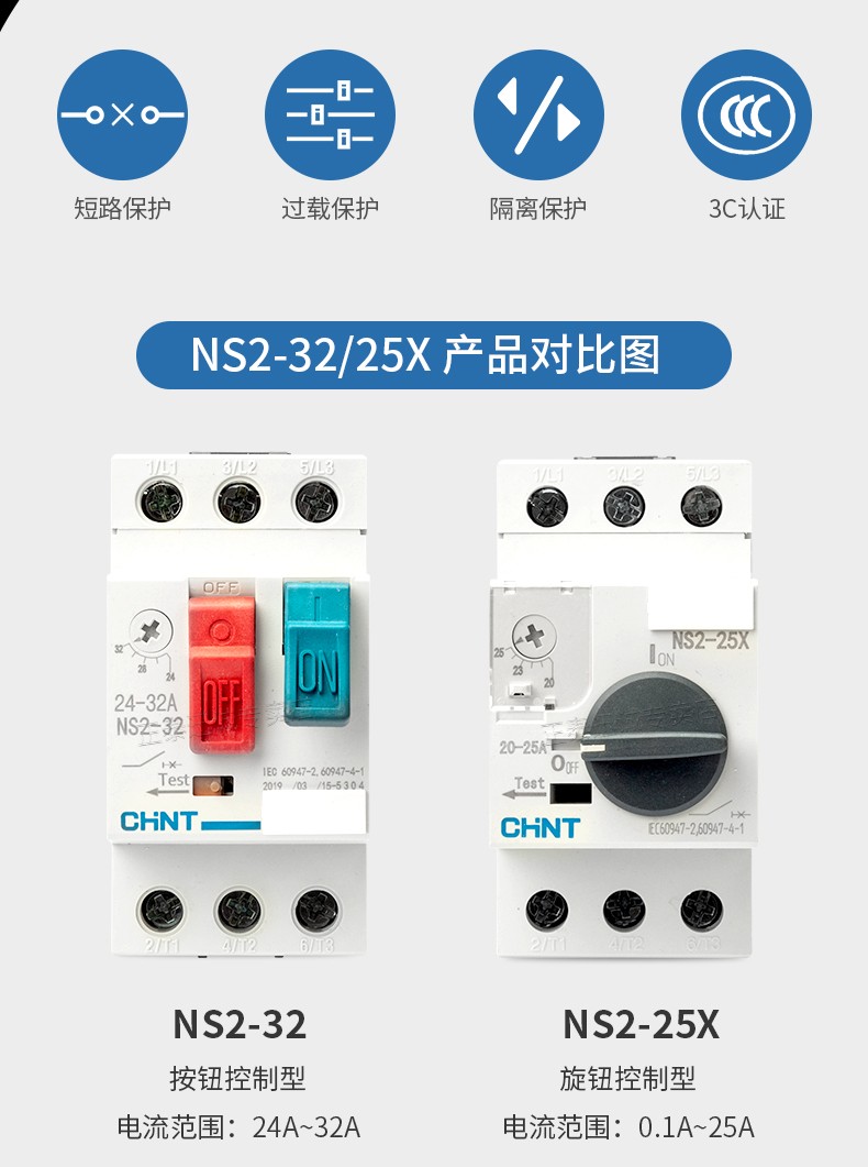 正泰(CHNT) 马达保护断路器NS2-32 交流电动机保护器 起动器 三相电机启动保护器380V NS2-32 24-32A
