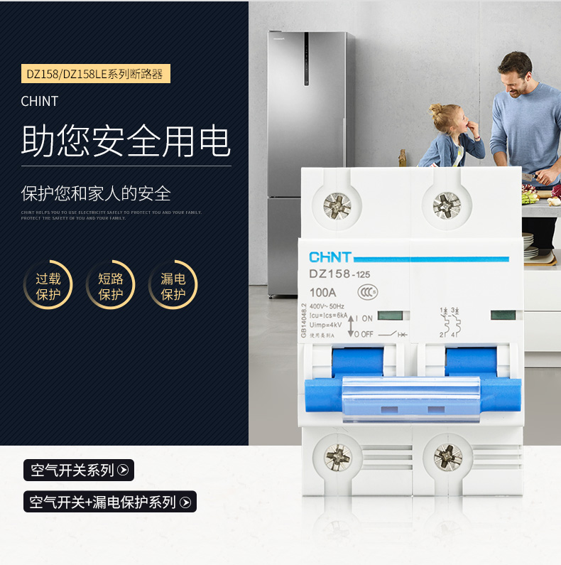 正泰(CHNT) 正泰电工 大功率断路器(带漏电保护器)DZ158LE-125 3P 100A