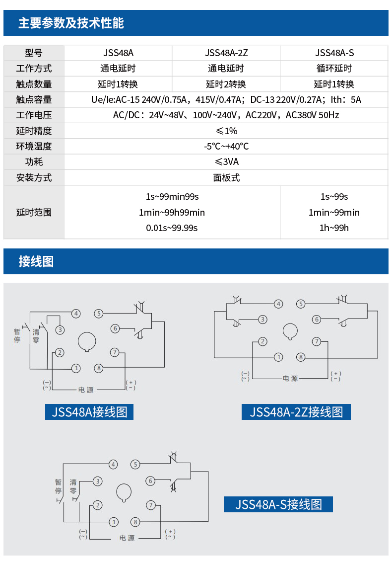 正泰时间继电器JSS48A JSS48A-S 2Z通电延时数显循环控制AC220V JSS48A-2Z AC220V