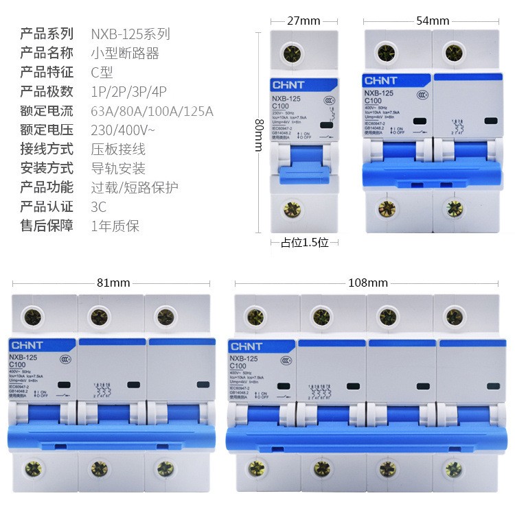 正泰断路器 空气开关 过载空开小型断路器NXB-125系列 3P C125