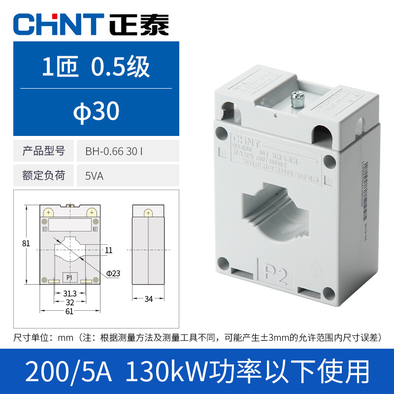 正泰(CHNT) 电流互感器BH0.66 30I 电流比 电流互感器 穿心匝数1匝 电流比 200/5A φ30 0.5级Ⅰ