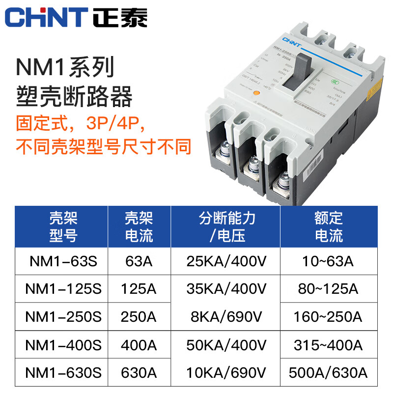 正泰(CHNT)塑壳断路器 过载短路保护器 三相三线空气开关 NM1-800S/3300 630A