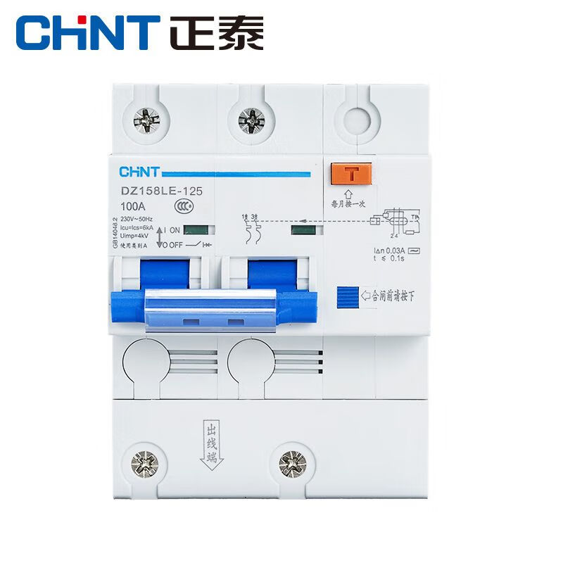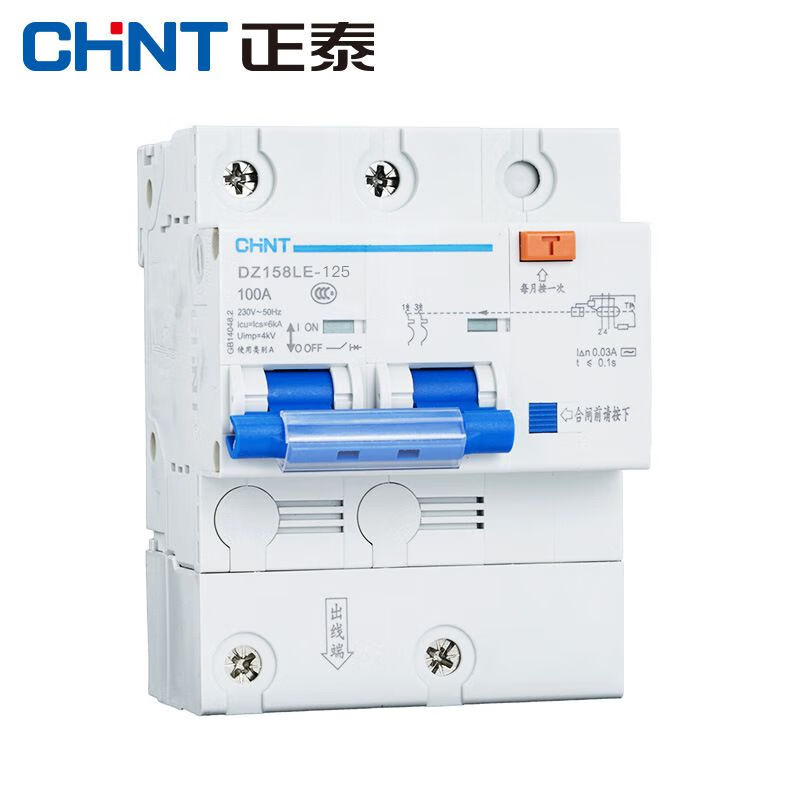 正泰(CHNT)小型漏电断路器DZ158LE大功率 100A 2P漏电保护开关漏保总开 DZ158LE至125 2P 80A 30mA