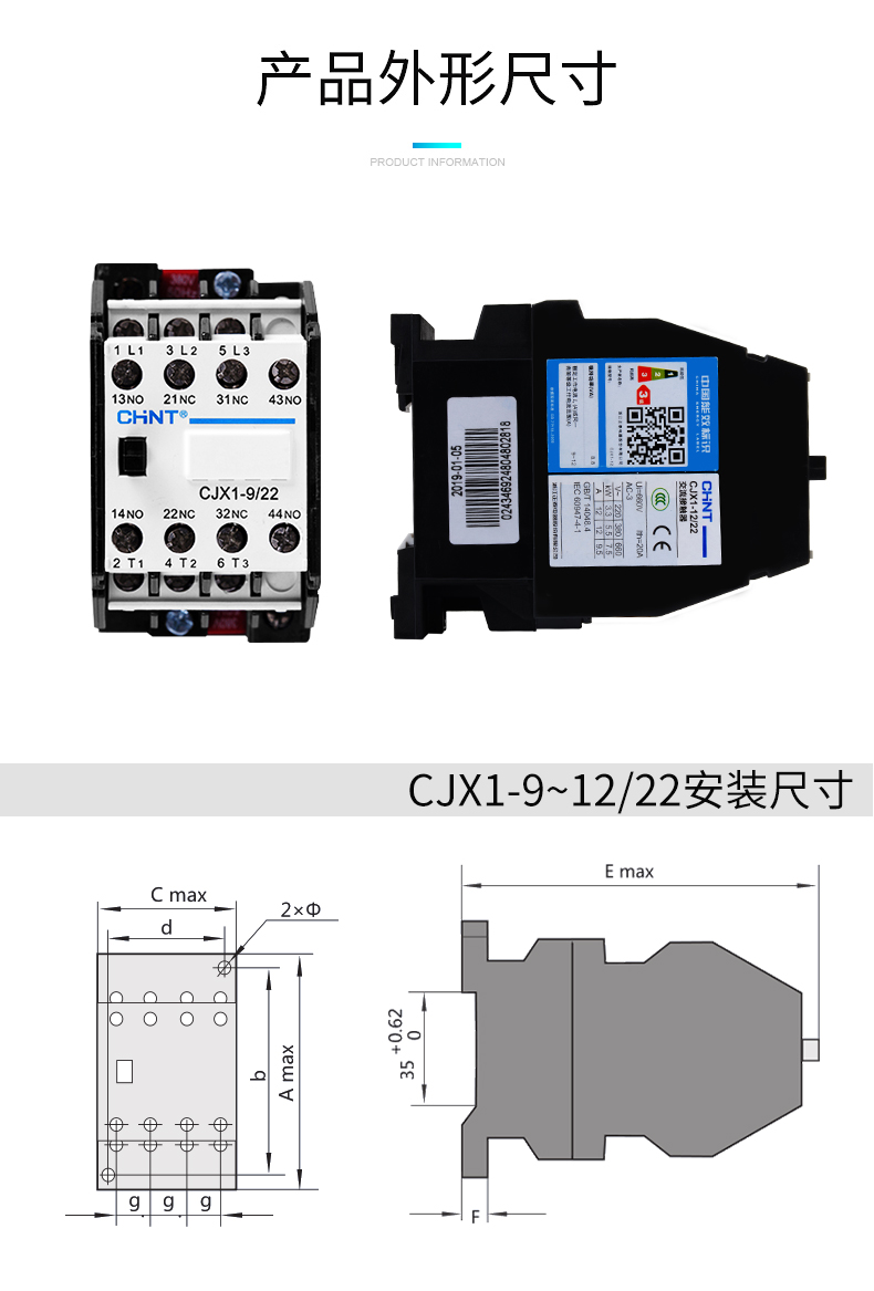 正泰交流接触器单相三相 cjx1-170/22 220v