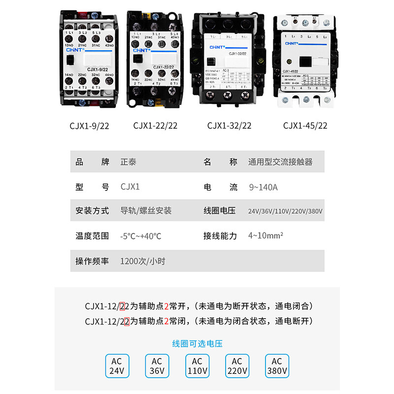 正泰交流接触器单相三相 cjx1-32/22 220v